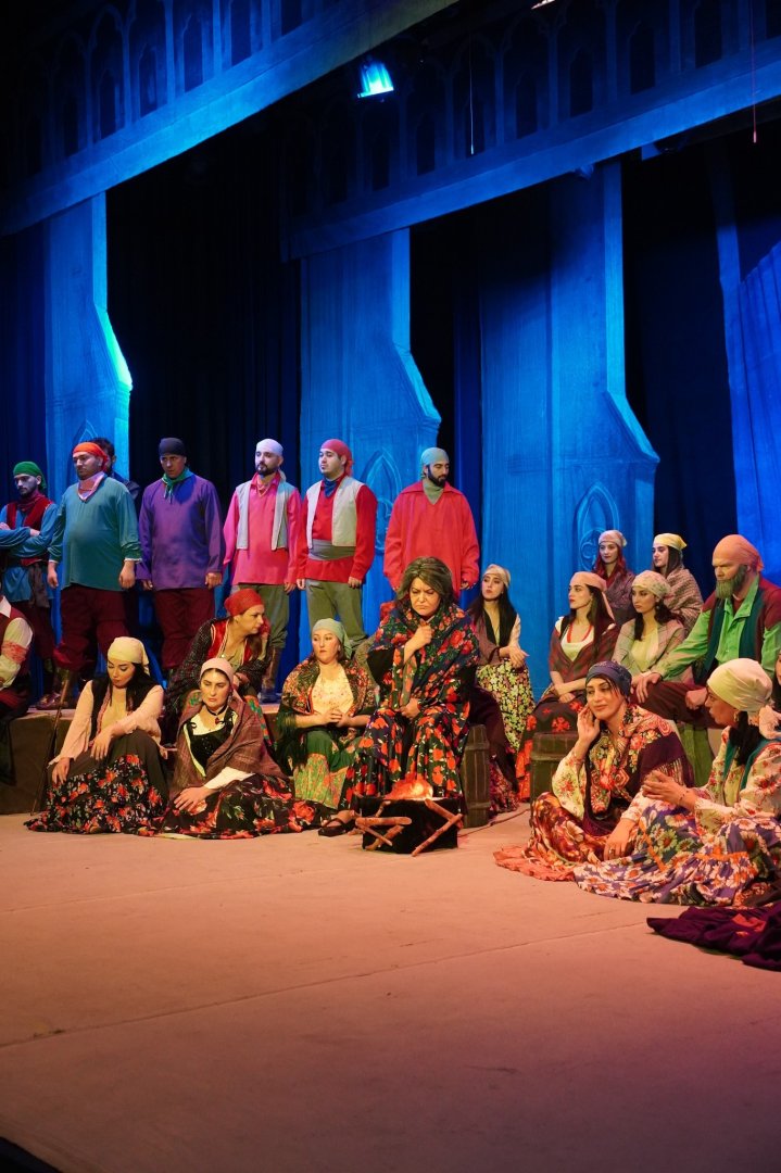Спектакль был исполнен с высоким профессионализмом под руководством заслуженного артиста, дирижёра Эйюба Гулиева, при участии симфонического оркестра и хора Азербайджанского государственного академического театра оперы и балета. Режиссёр постановки 0 заслуженный деятель искусств Хафиз Гулиев, хормейстер - заслуженный деятель искусств Севиль Гаджиева.