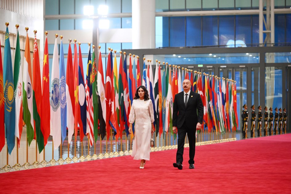 Как сообщает TurkicWorld, председатель Китайской Народной Республики Си Цзиньпин и первая леди Пэн Лиюань встретили Президента Азербайджанской Республики Ильхама Алиева и Первую леди Мехрибан Алиеву.