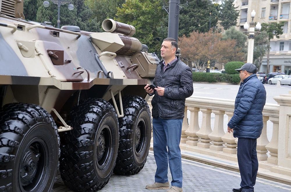 На ярмарке "Zəfər" в городе Баку экспонируется военная техника.