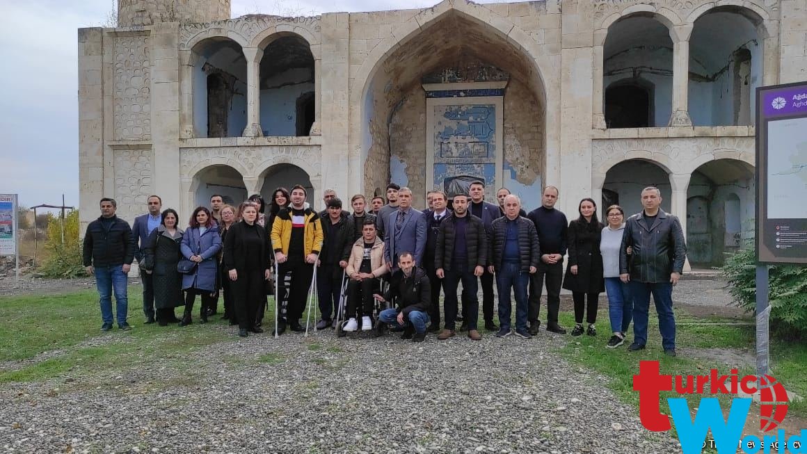 Члены делегации, приехавшие из Баку в Агдам при организации Федерации фехтования в инвалидных колясках Азербайджана, помолились в агдамской Джума-мечети.