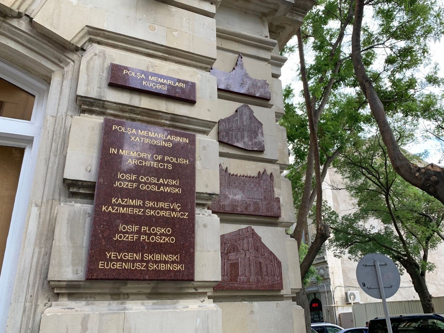 В то время главными городскими архитекторами Баку были поляки Иосиф Гославский, Казимир Скуревич, Иосиф Плошко и Евгений Скибинский. К творениям польских архитекторов относятся здание бывшей Городской Думы (ныне - здание Исполнительной власти Баку), Дворец Тагиева (ныне – Национальный музей истории Азербайджана), Тагиевская женская мусульманская школа (ныне – Институт рукописей НАНА), Дворец Мухтарова (ныне - Дворец счастья), Исмаилия (ныне - здание Президиума НАНА), Дом-музей Мстислава Ростроповича, здание Союза архитекторов, Государственный театр кукол, множество жилых домов.