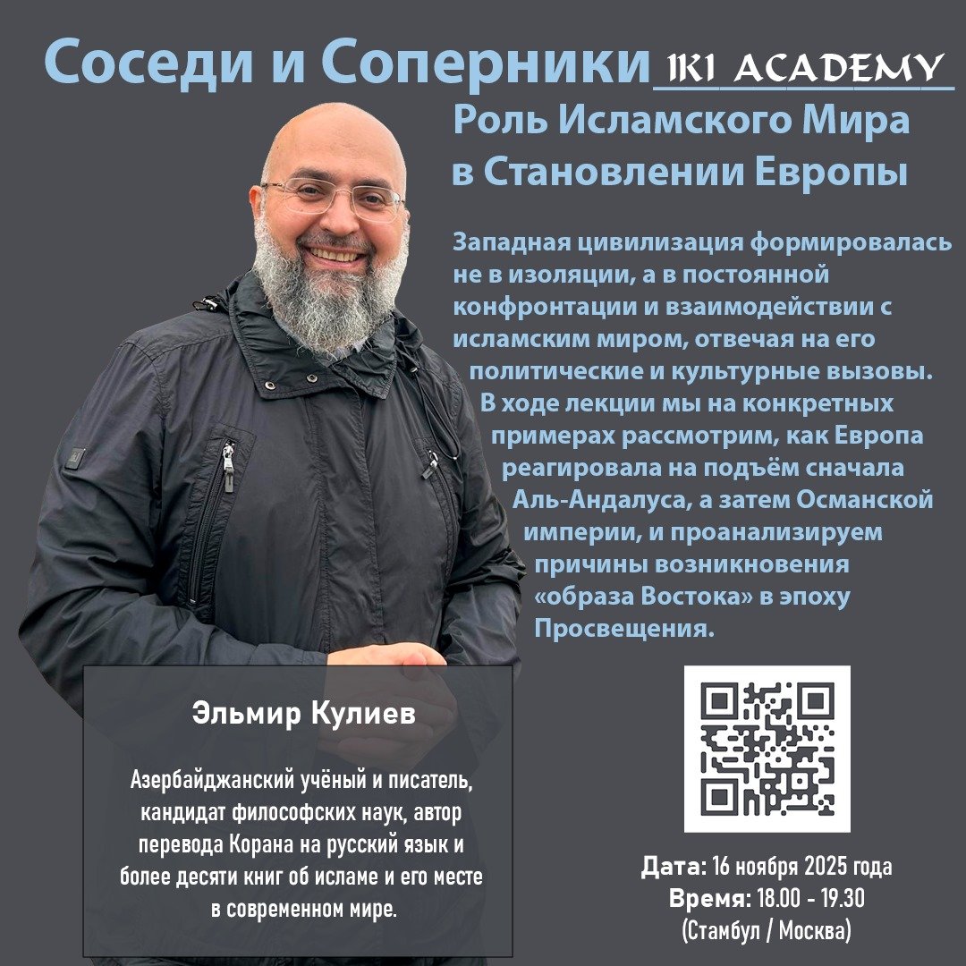 БАКУ /TurkicWorld/ В ближайшие дни в столице состоится лекция азербайджанского учёного и писателя Эльмира Кулиева, посвящённая историческому взаимодействию исламской цивилизации и Запада. Мероприятие будет посвящено тому, как Европа формировалась под влиянием политических и культурных вызовов исламского мира, а также возникновению «образа Востока» в эпоху Просвещения.