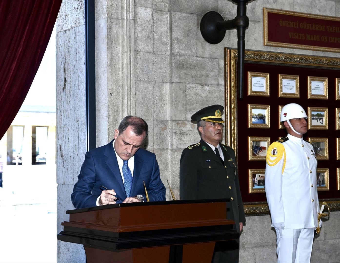 БАКУ /TurkicWorld/ - Министр иностранных дел Азербайджана Джейхун Байрамов в рамках официального визита в Турцию посетил мавзолей основателя Турецкой Республики Мустафы Кемаля Ататюрка (Аныткабир) и возложил венок к его могиле.