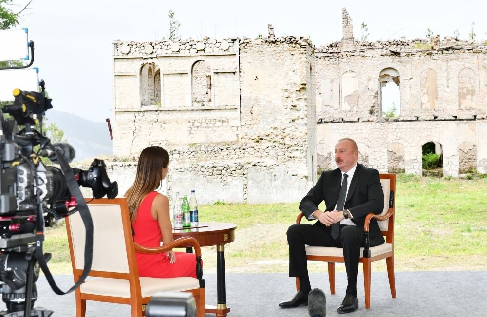\БАКУ /TurkicWorld/ - Президент Азербайджанской Республики Ильхам Алиев 22 июля в Шуше дал интервью телеканалу «Евроньюс». Интервью было показано 2 августа на «Евроньюсе».