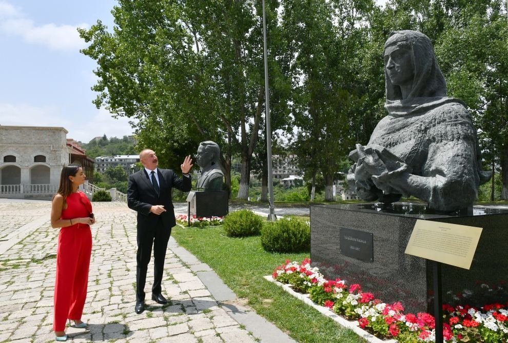 После интервью Президент Ильхам Алиев проинформировал корреспондента «Евроньюс» о памятниках известным личностям Азербайджана Натаван, Бюльбюлю и Узеиру Гаджибейли, расстрелянных армянами в Шуше во время оккупации.