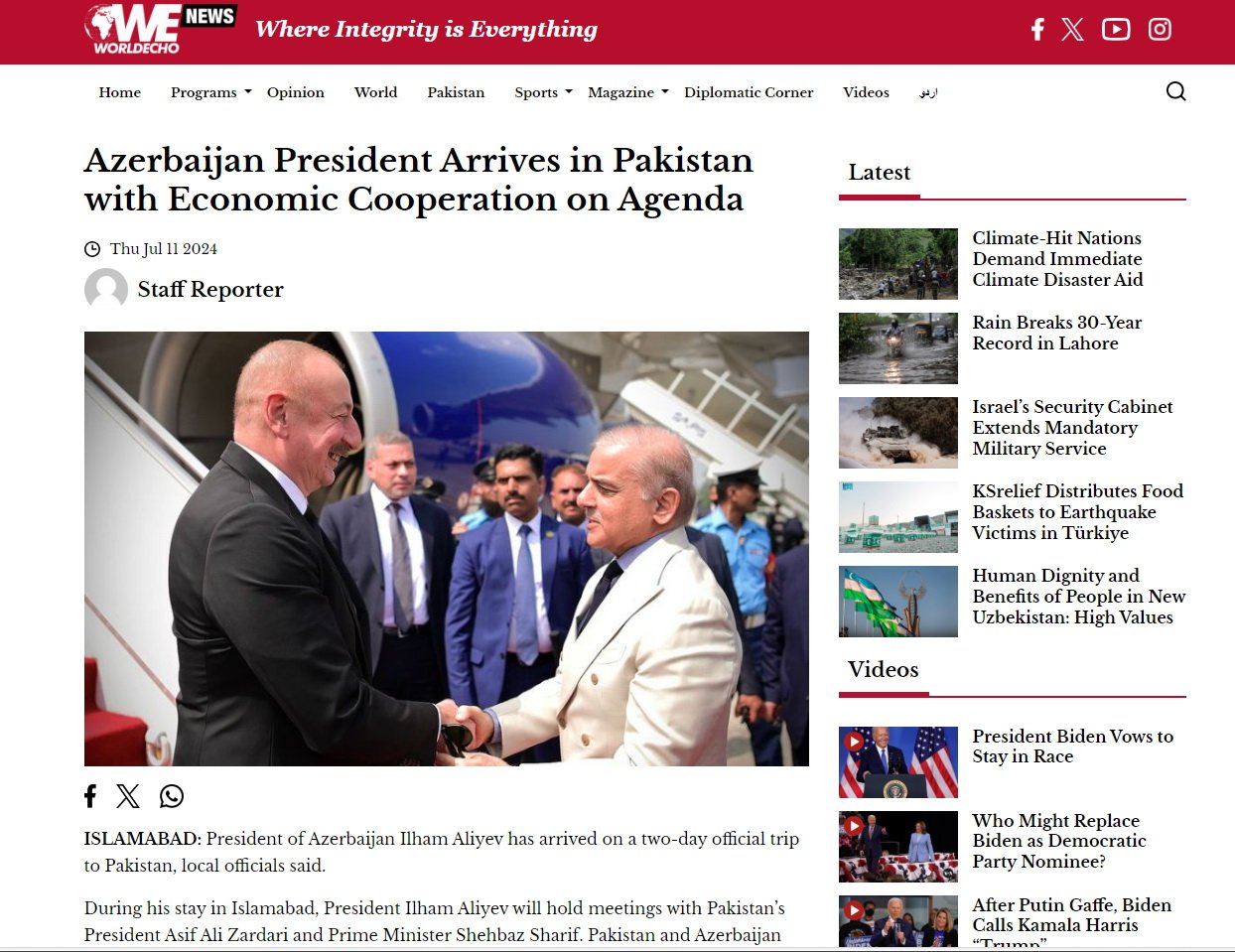 На сайтах Radio Pakistan и агентства Associated Press of Pakistan, а также на портале News of Pakistan представлена информация о подписании документов между Азербайджаном и Пакистаном в присутствии Президента Ильхама Алиева и премьер-министра Мухаммада Шахбаза Шарифа, а также о встрече в расширенном составе.