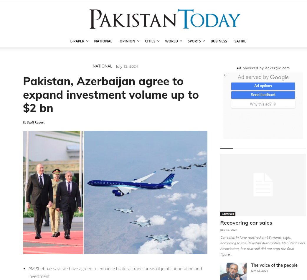 Газеты Islamad Post, Pakistan Today и порталы The International News, Mettis Global опубликовали материалы под заголовком «Пакистан и Азербайджан договорились о доведении объема инвестиций до 2 миллиардов долларов».