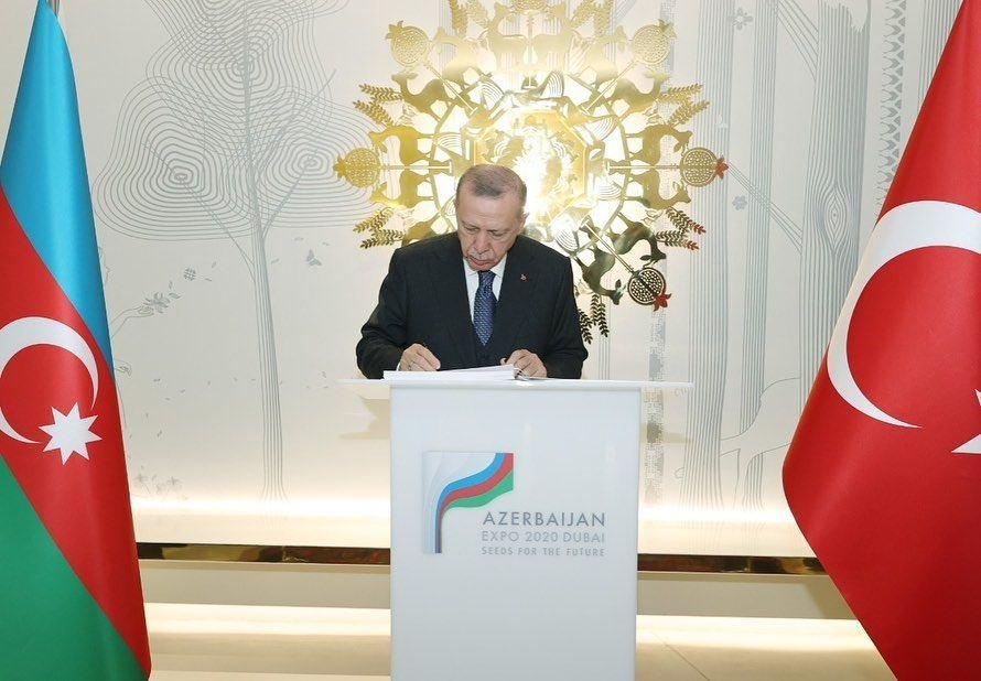 В рамках официального визита в Объединенные Арабские Эмираты Президент Турции Реджеп Тайип Эрдоган посетил павильон Азербайджана на международной выставке "Expo-2020" в Дубае.