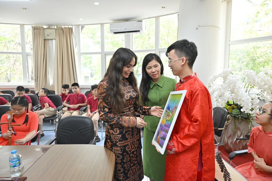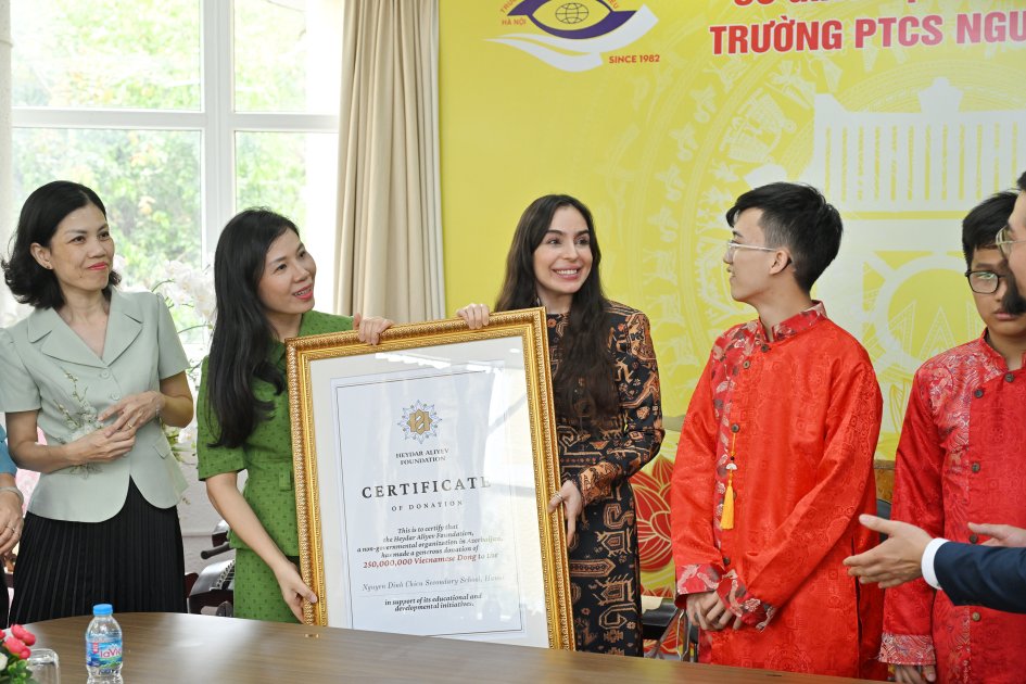 Вице-президент Фонда Гейдара Алиева Лейла Алиева вручила сертификат о финансовой поддержке Фонда Гейдара Алиева средней школе для лиц с нарушением зрения во Вьетнаме в рамках поддержки инклюзивного образования. В то же время, было доведено до внимания, что Фонд Гейдара Алиева подарит школе ряд оборудования для поддержки образования детей с нарушением зрения.