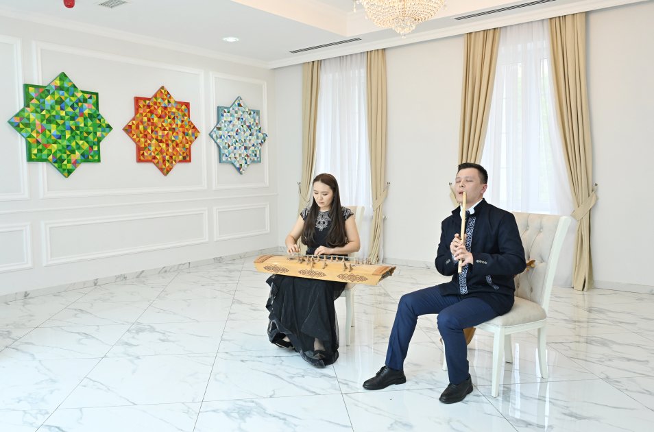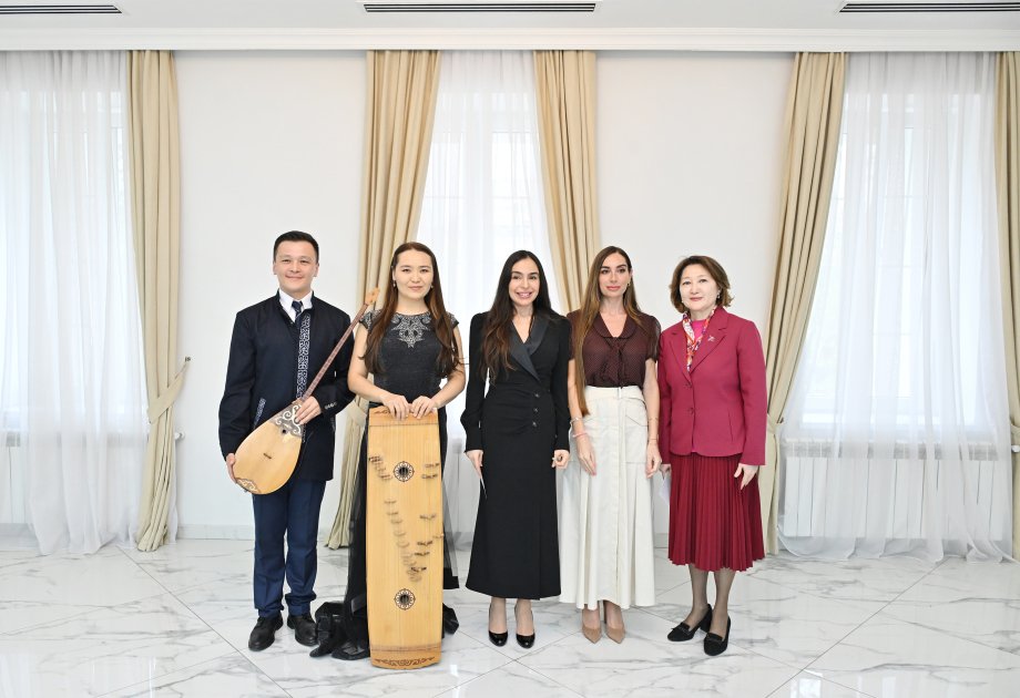 Лейла Алиева и Арзу Алиева, ознакомившиеся с представленными в музее ФТКН образцами традиционных ремесел и другими экспонатами, отражающими материальное и культурное наследие тюркских народов, а также посмотрели культурную программу, состоящую из музыкальных произведений и танцев этих народов.