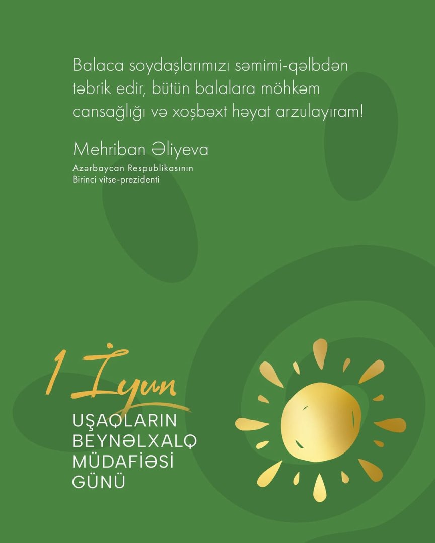 БАКУ /TurkicWorld/ - Первый вице-президент Азербайджанской Республики Мехрибан Алиева на своей официальной странице в Instagram поделилась публикацией по случаю 1 Июня - Международного дня защиты детей.