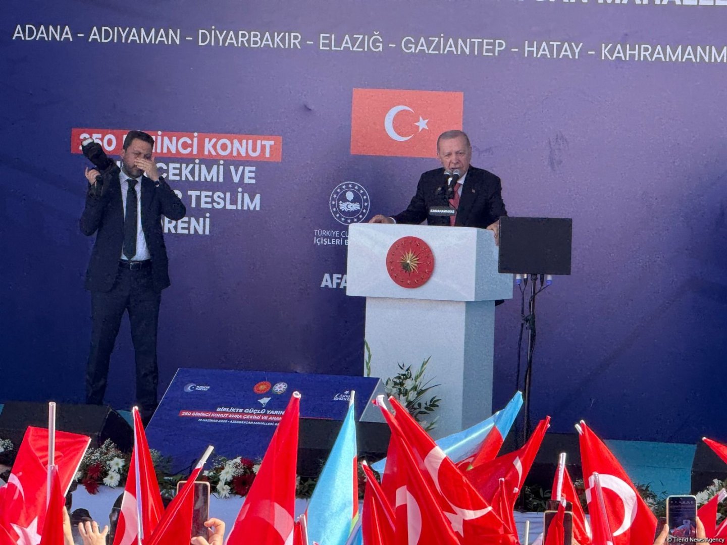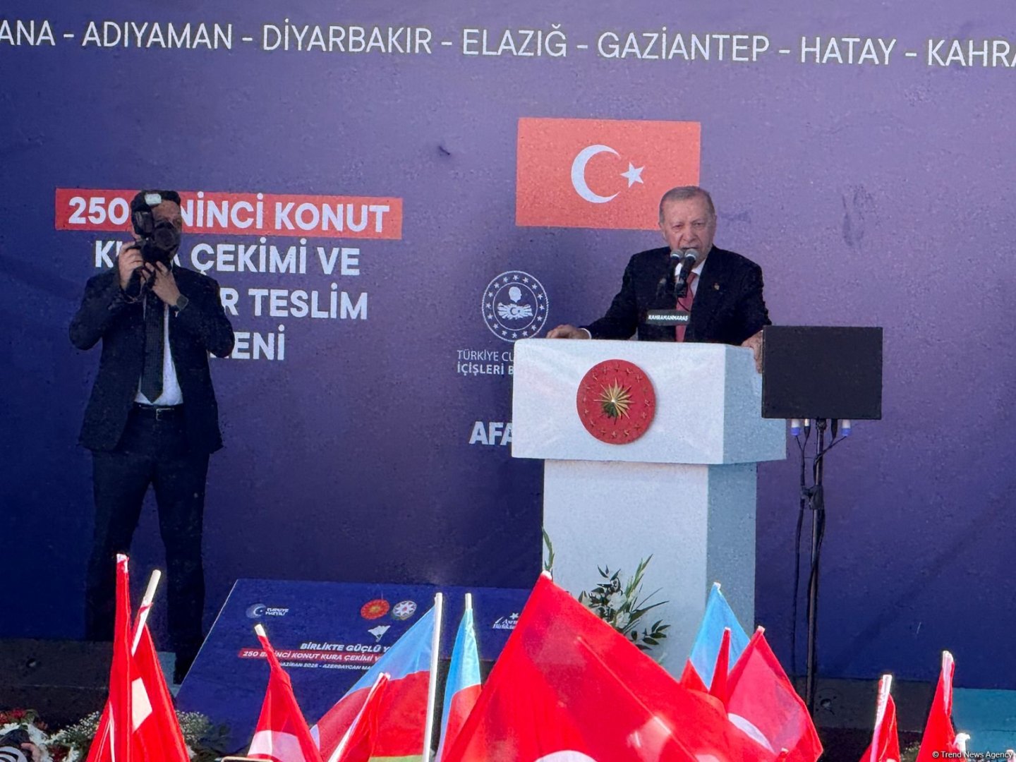 Затем состоялась церемония открытия "Азербайджанского квартала" в Кахраманмараше. Президент Ильхам Алиев и Президент Реджеп Тайип Эрдоган приняли участие в мероприятии.