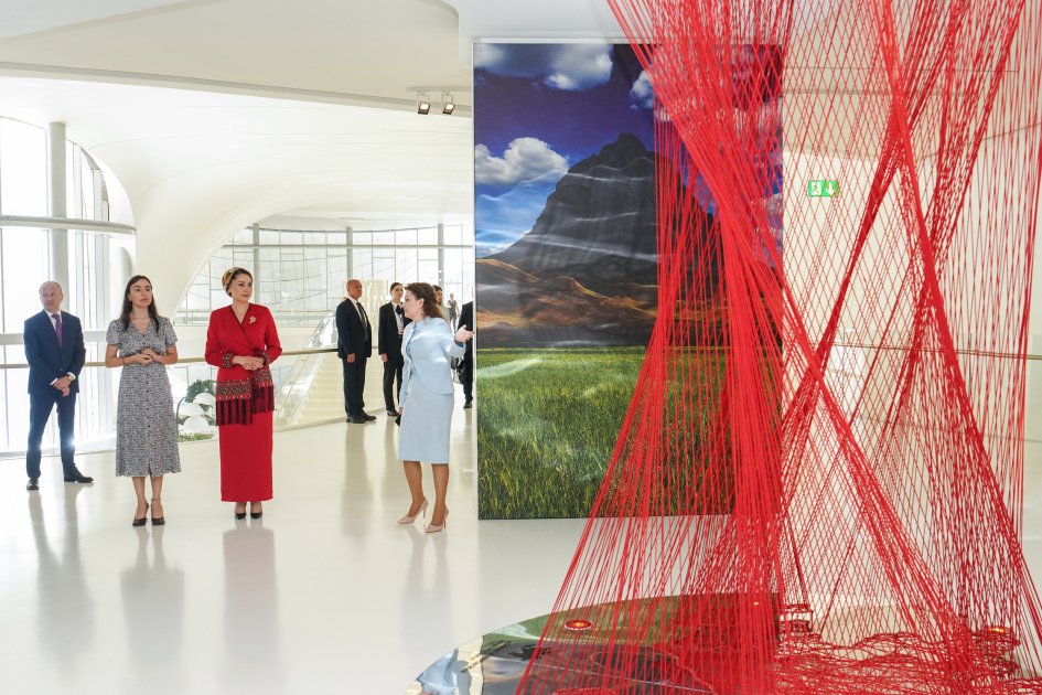 Ознакомившись также с выставкой «Жемчужины Азербайджана», гостье было сообщено, что на экспозиции демонстрируются редкие экспонаты, связанные с неисчерпаемыми природными богатствами, многовековой историей и культурным наследием страны. Подчеркивалось, что здесь представлены редкие образцы древних ремесел, в том числе азербайджанской ковровой школы, а также в оригинальной - звуковой форме экспонируются наши старинные музыкальные инструменты. Было также отмечено, что на выставке, где также представлены национальные одежды Азербайджана и древние монеты, посетители могут увидеть священные книги на различных языках.