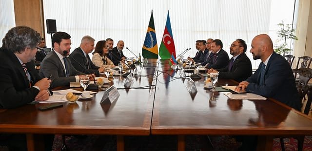 В рамках визита заместитель министра был принят вице-президентом Бразилии Жералду Алкмином. На встрече Ж. Алкмин с удовлетворением вспомнил свой визит в нашу страну в качестве главы бразильской делегации, которая принимала участие в СОР29 в ноябре прошлого года, и встречу с Президентом Азербайджана Ильхамом Алиевым, отметив важность развития дружественных отношений и сотрудничества между нашими странами. В этом контексте он пожелал успехов в работе по политическим консультациям, а также первому заседанию Совместной рабочей группы по торговому и инвестиционному сотрудничеству между Правительством Азербайджанской Республики и Правительством Федеративной Республики Бразилия.