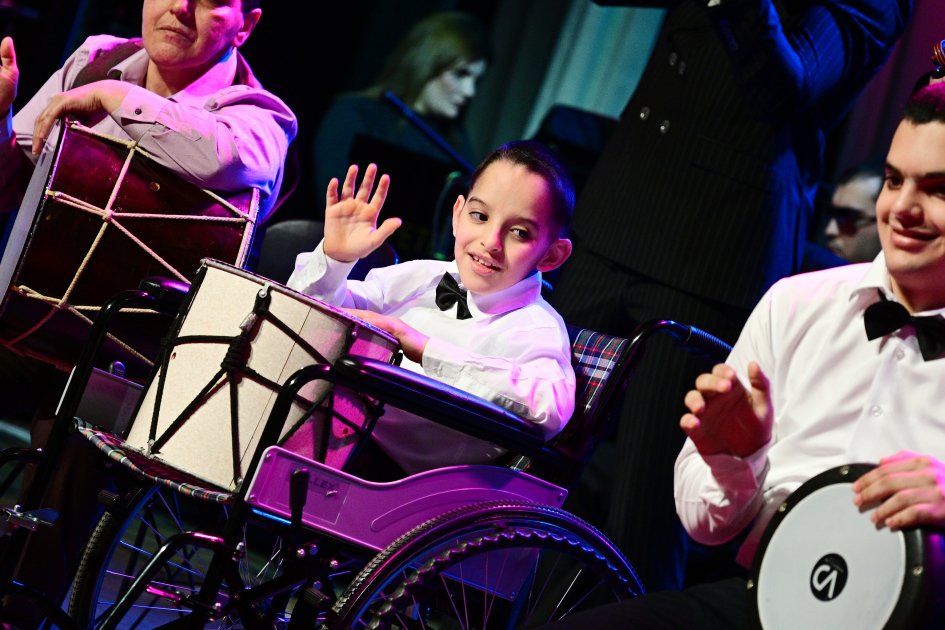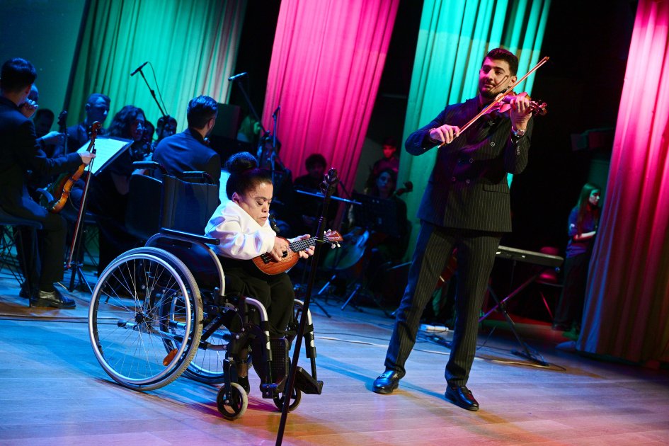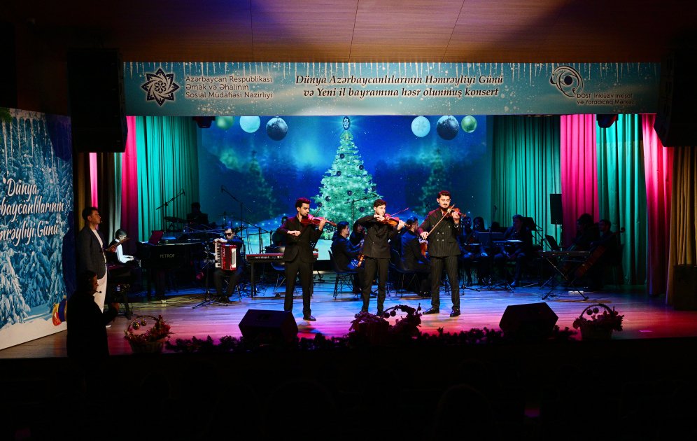 Затем была представлена концертная программа, посвященная 31 декабря — Дню солидарности азербайджанцев мира и Новому году. В рамках программы выступили воспитанники Социального учреждения номер 2 для лиц с инвалидностью до 18 лет, а также инструкторы и бенефициары Центра в сопровождении Инклюзивного камерного оркестра и Инклюзивного ансамбля. Народные артисты Зульфия Ханбабаева и Натик Ширинов выступили на одной сцене с талантами из уязвимых групп.