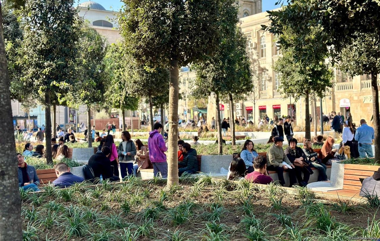 Было подчеркнуто, что на территории общей площадью 3,5 гектара отменено движение легковых автомобилей и созданы отвечающие современным требованиям автобусные, пешеходные и велосипедные полосы. Снято старое дорожное покрытие, уложены гранитные бордюры и около 22 тысяч квадратных метров гранитных плит мощения.