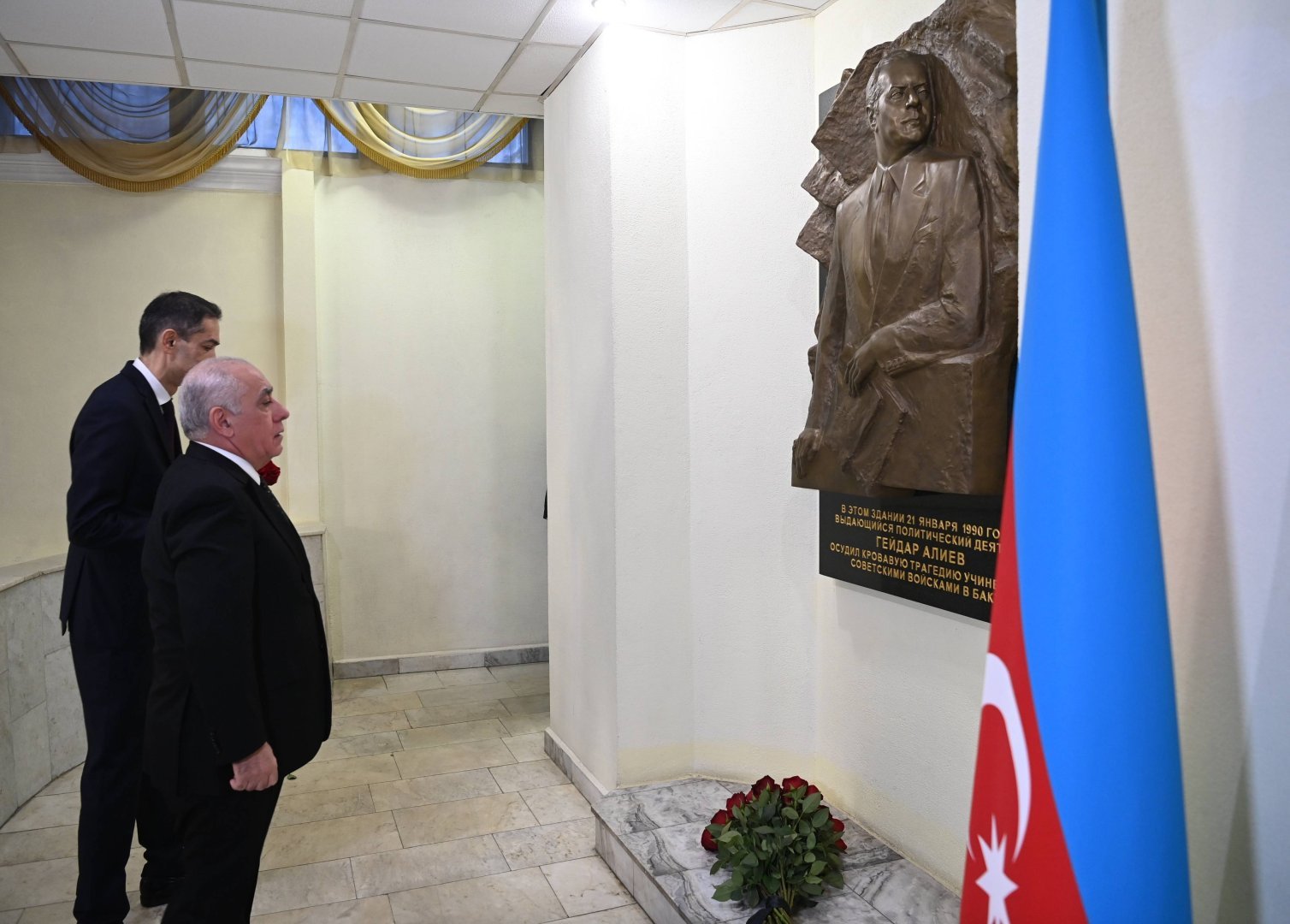 Премьер-министр возложил цветы к бюсту Общенационального лидера азербайджанского народа Гейдара Алиева.