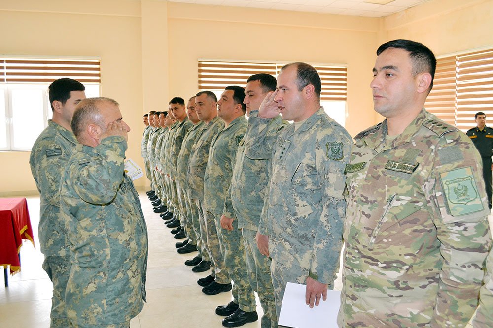 Затем капитан Мушфиг Рагимли, окончивший курс с отличием, рассказал о важности подобных курсов в области армейского строительства и отметил, что новые научные знания, обретенные в ходе курса, будут успешно применены в войсках в процессе боевой подготовки.