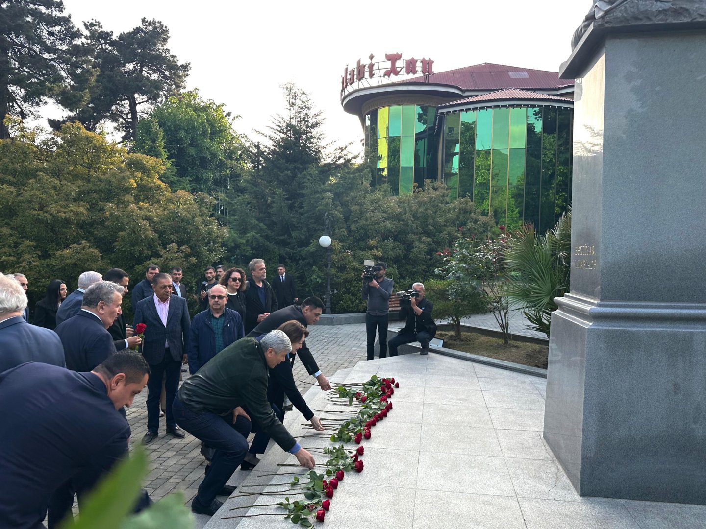 До посещения музея участники мероприятия почтили память поэта, возложили цветы к памятнику, установленному в его честь, и выразили глубокое уважение к его светлой памяти.
