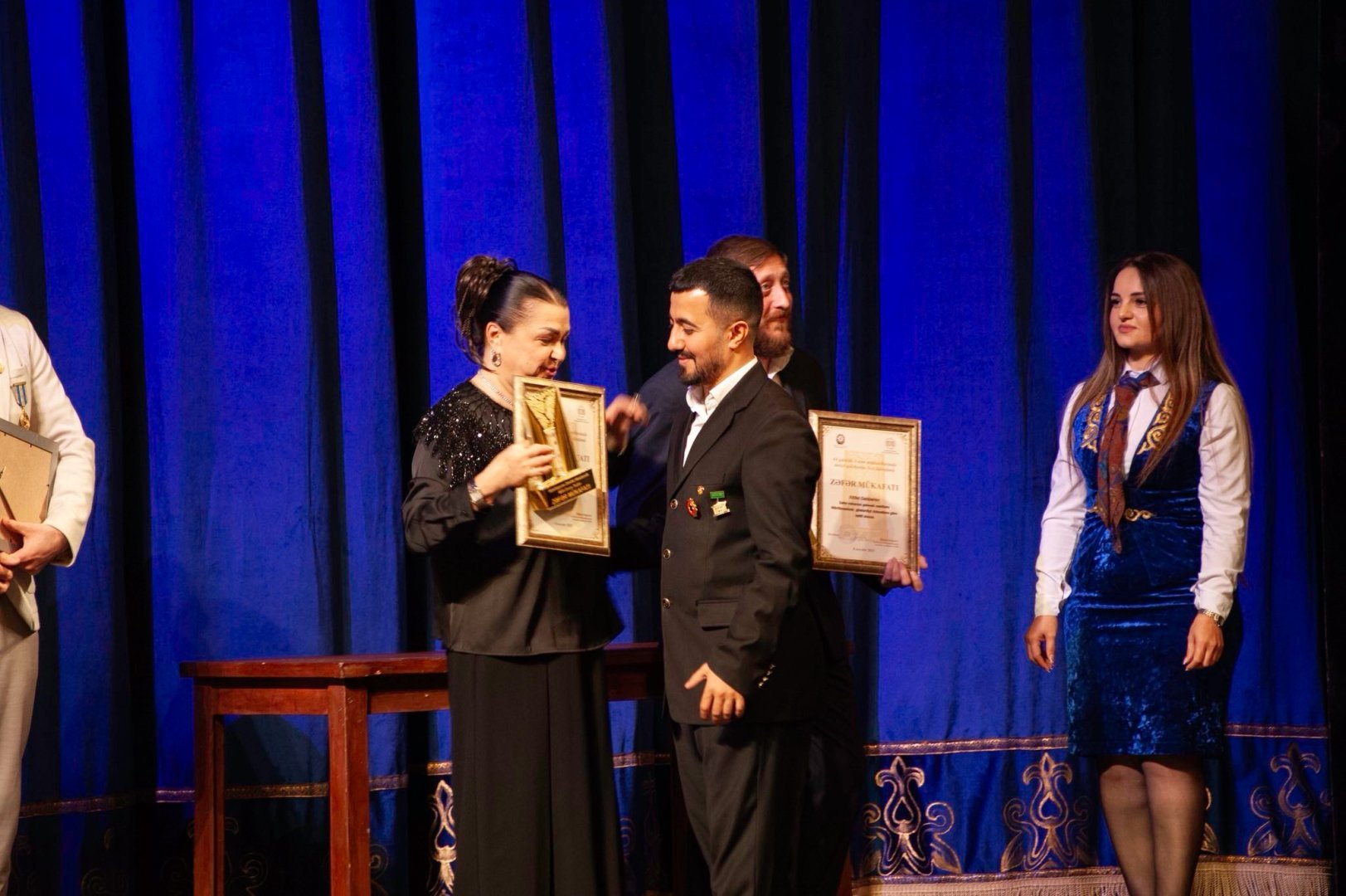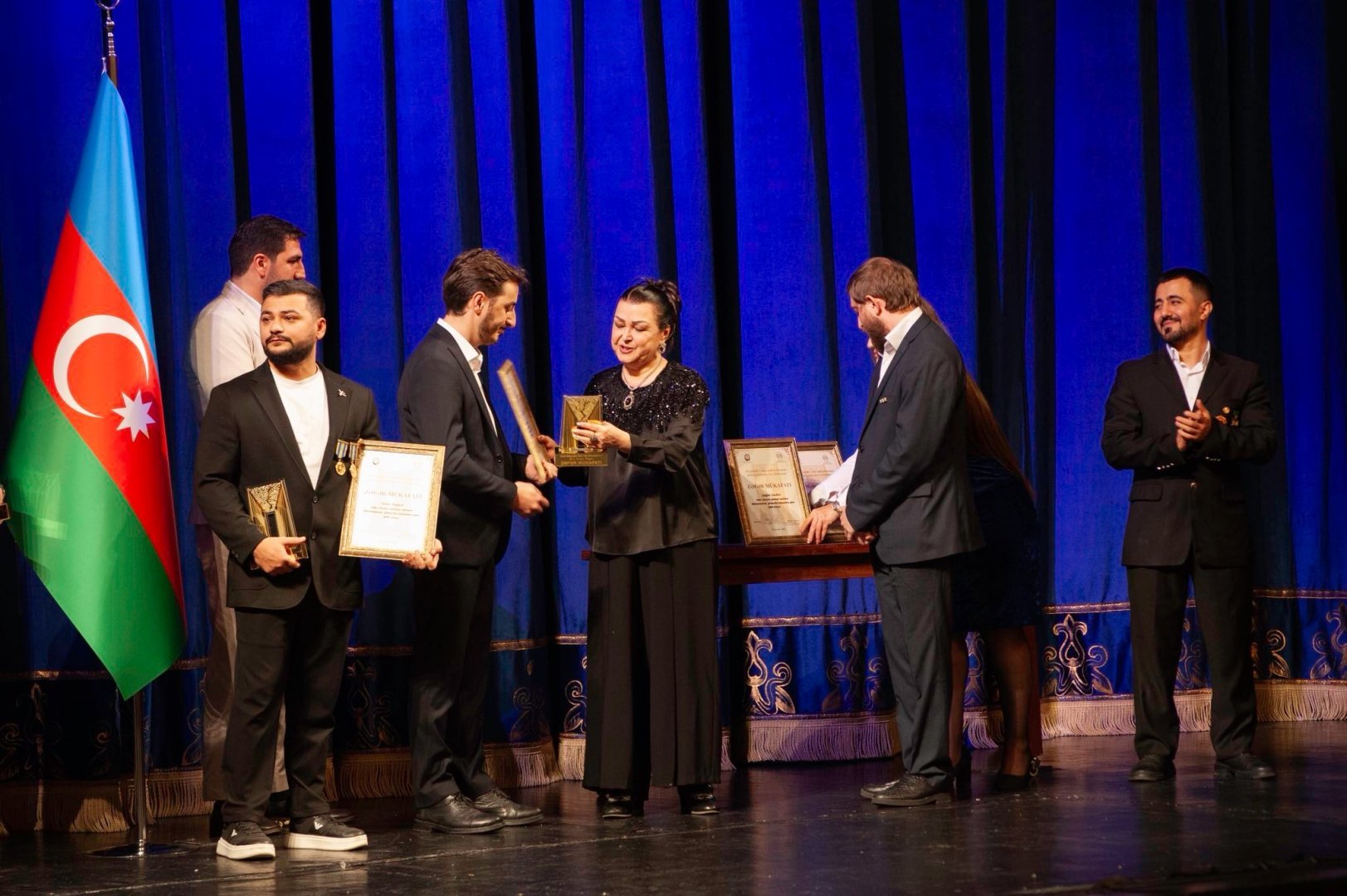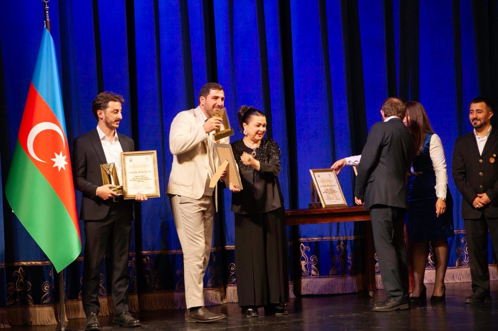 Премию ZƏFƏR народный артист, лауреат Государственной премии Гаджи Исмайылов вручил отцу шехида Ровшана Нурзаде - народному артисту Али Нурзаде. Директор театра, заслуженный работник культуры Ильхам Асланов вручил награду народному артисту Нураддину Мехтиханлы, а народная артистка Фиренгиз Муталлимова передала премии участникам 44-дневной Отечественной войны - Тарлану Аскерли, Руслану Керимову, Даглару Юсифову, Руфату Джаббарову и Фуаду Джабраилову.