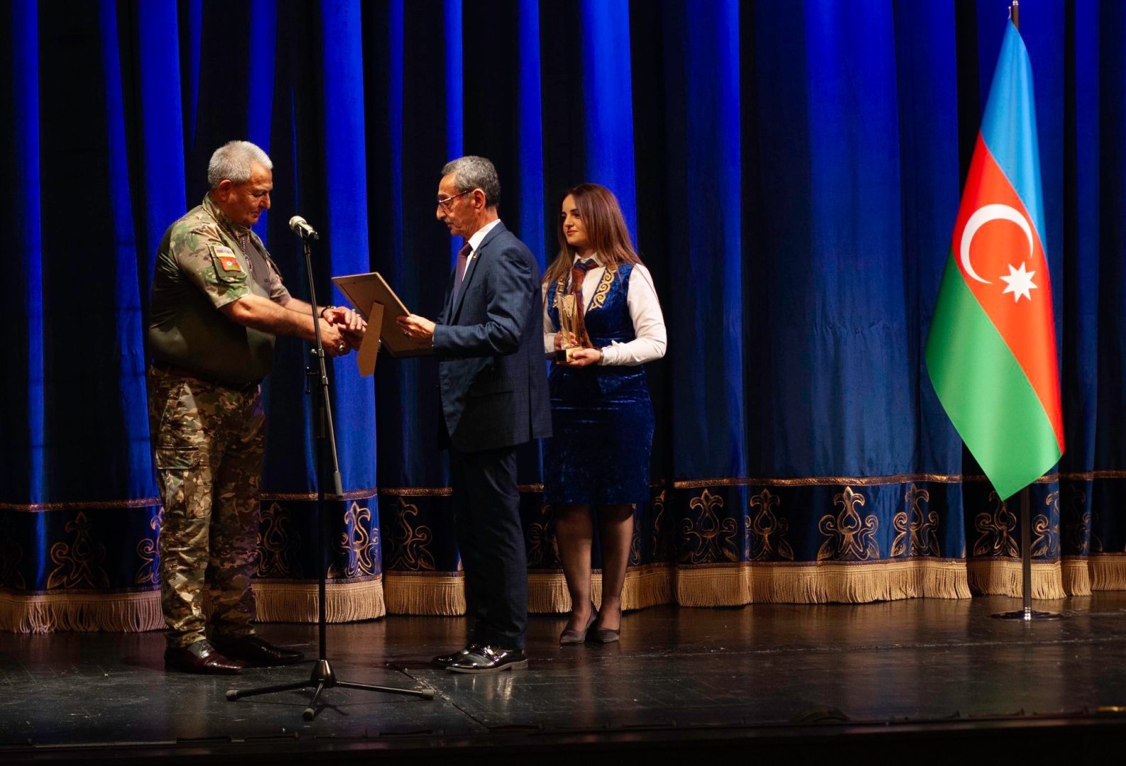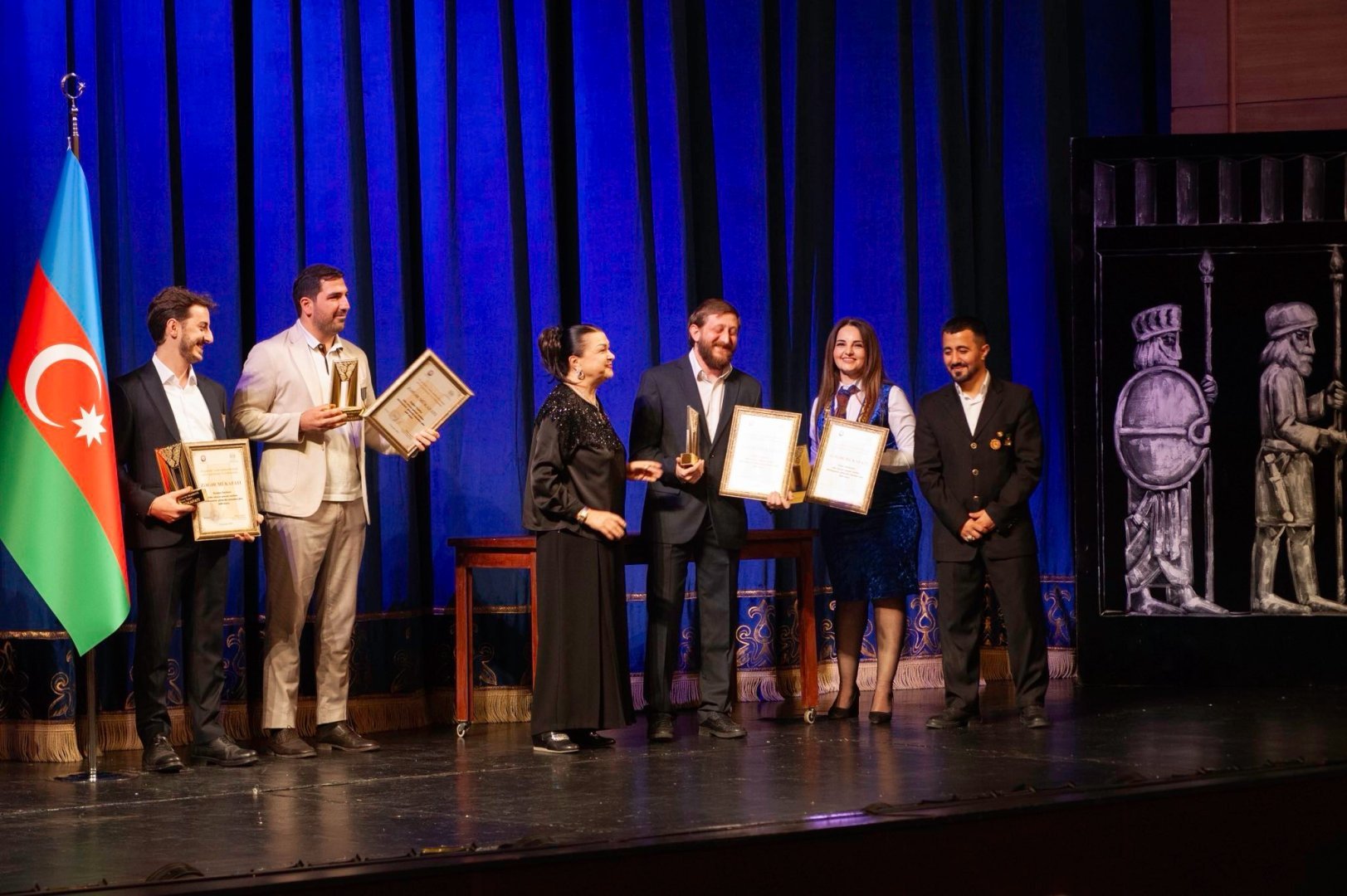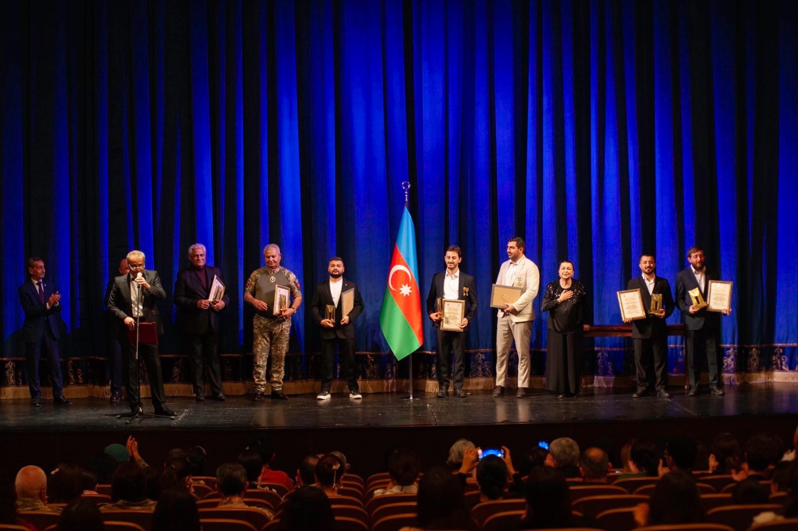 Премию ZƏFƏR народный артист, лауреат Государственной премии Гаджи Исмайылов вручил отцу шехида Ровшана Нурзаде - народному артисту Али Нурзаде. Директор театра, заслуженный работник культуры Ильхам Асланов вручил награду народному артисту Нураддину Мехтиханлы, а народная артистка Фиренгиз Муталлимова передала премии участникам 44-дневной Отечественной войны - Тарлану Аскерли, Руслану Керимову, Даглару Юсифову, Руфату Джаббарову и Фуаду Джабраилову.