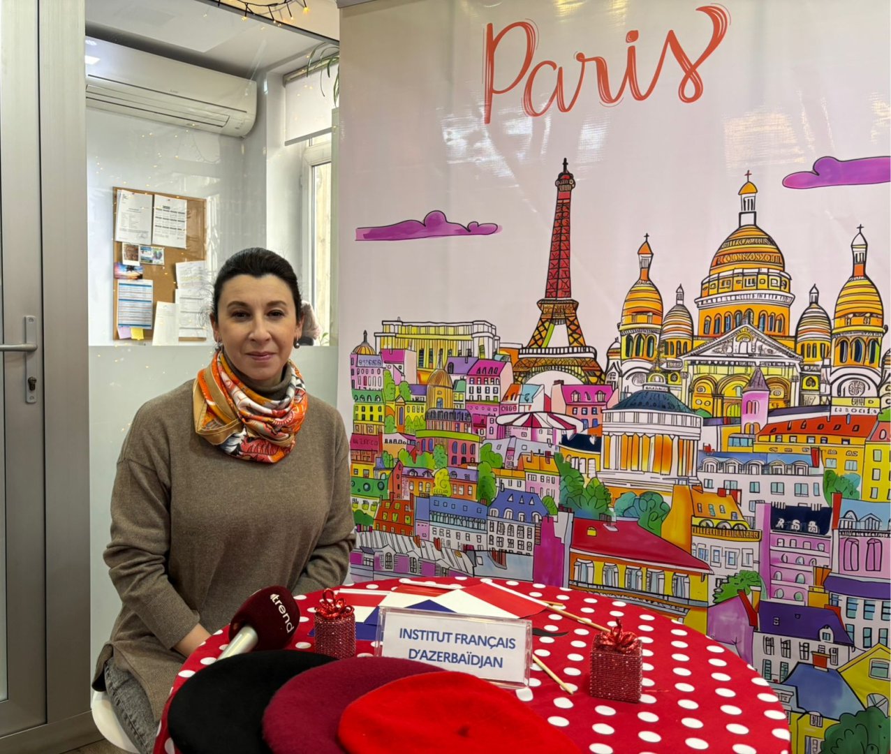 “Сегодня мы находимся во Французском институте в Баку, в центре города. Это место, где можно изучать французский язык, узнавать о французской культуре, читать французские книги. У нас также есть библиотека и специальный уголок для детей с отдельной литературой. Сегодня у нас День открытых дверей, и мы ожидаем, что с помощью весёлых мероприятий, забавных игр и вкусной еды сможем заинтересовать новых посетителей прийти во Французский институт, чтобы изучать французский.
