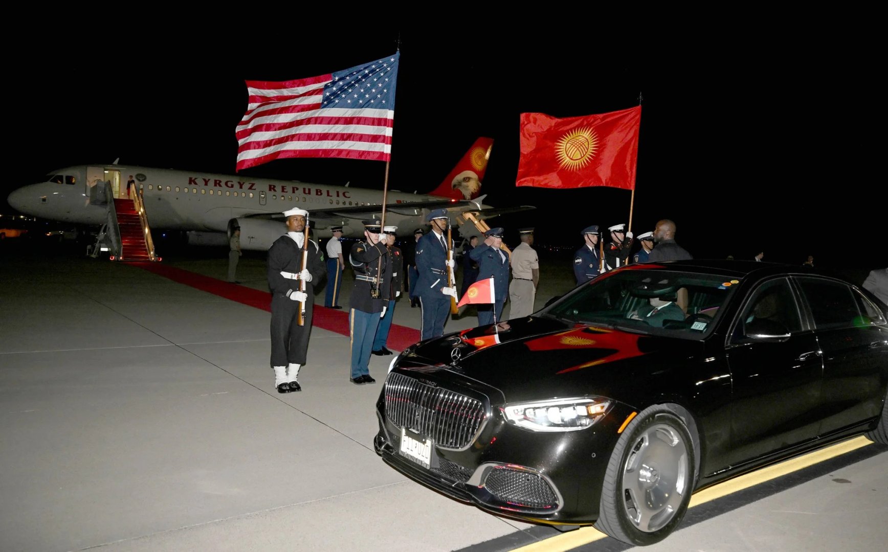 Президента Садыра Жапарова встретили помощник государственного секретаря США по делам Южной и Центральной Азии Пол Капур и другие официальные лица.