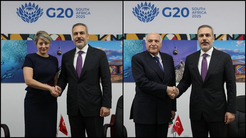 Согласно источникам в МИД, министр Фидан на полях заседания министров иностранных дел G20 в Йоханнесбурге встретился с коллегами из Алжира и Канады.