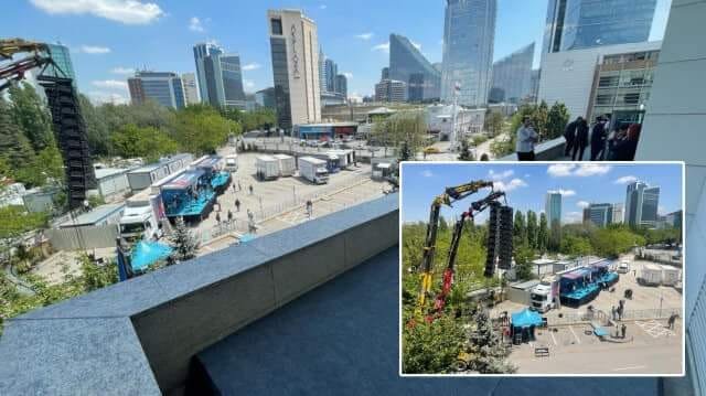 Правящая партия Турции , Партия Справедливости и Развития ( ПСР) гготовится к победной речи президента Реджеп Тайип Эрдогана. Как сообщает TurkicWorld для этого у здании ПСР готовится трибуна где в случае победы на выборах выступит Эрдоган.