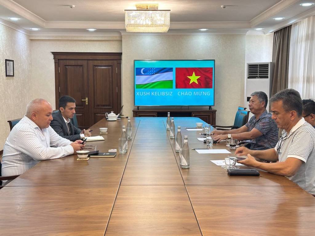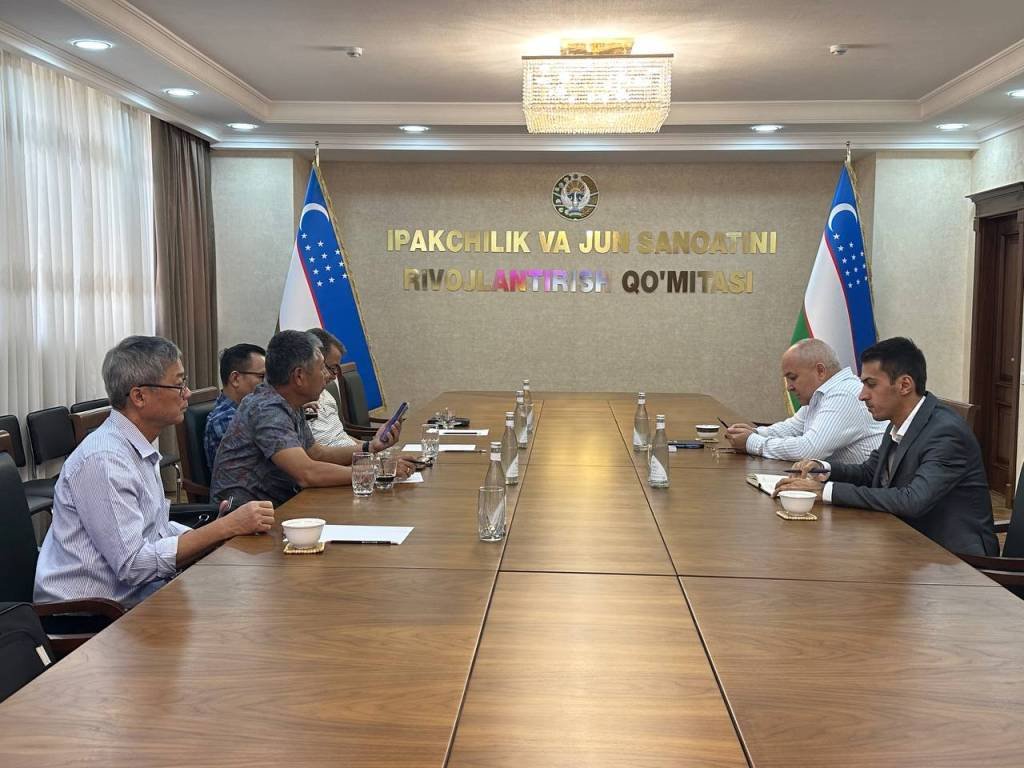 Председатель Комитета по развитию шелководства и шерстяной промышленности Республики Узбекистан Бахром Шарипов принял делегацию из Вьетнама во главе с руководителем компании "Ming Sang Co Ltd" Доаном.