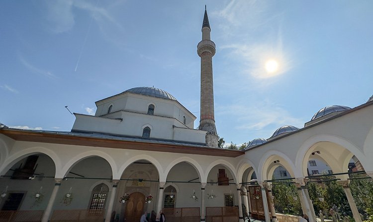 Bugünkü halini 1566'da Kanuni Sultan Süleyman'ın finanse etmesiyle alan, Saraybosna'yı neredeyse ikiye ayıran Miljacka Nehri'nin üst tarafında kalan ve yeşille krem renklerinin ahenkle bir araya geldiği cami, ihtişamıyla asırlardır tarihe ışık tutuyor.