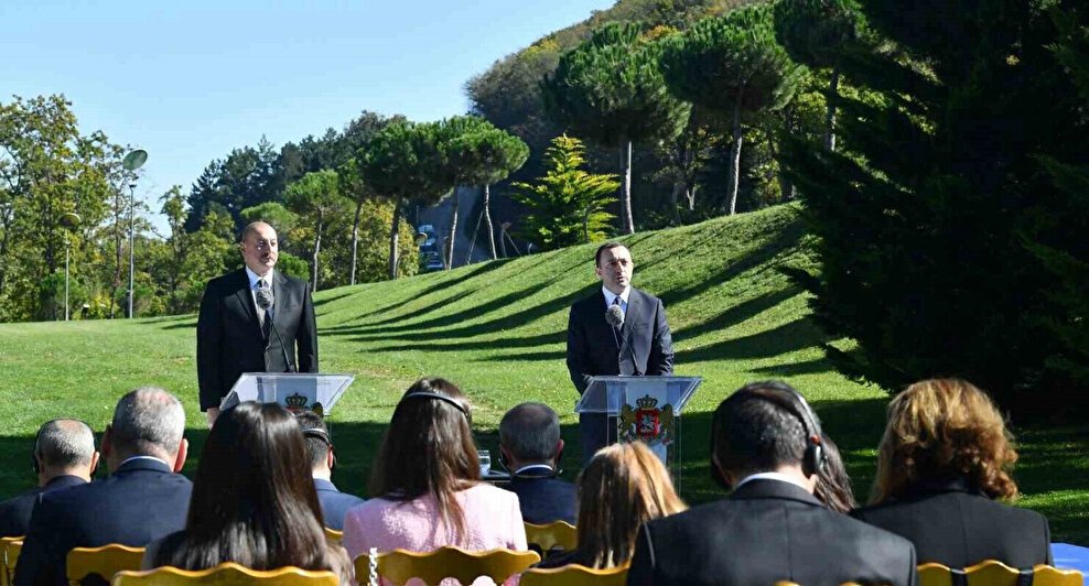 Azerbaycan ile Gürcistan arasında gerçekleştirilen karşılıklı temasların iki ülkeyi ve halklarını birbirine yakınlaştırma amacına hizmet ettiğini belirten Azerbaycan Cumhurbaşkanı İlham Aliyev, "Biz iki lider olarak ülkelerimiz ve halklarımız arasındaki dostluk ve kardeşlik ilişkilerini güçlendiriyor ve pekiştiriyoruz. Halklarımız yüzyıllardır komşuluk ve dostluk ortamında yaşamışlardır ve bu günümüzde de halen devam etmektedir" dedi. Bunun iki ülke için de önemli olduğunu vurgulayan Aliyev, "Başta Güney Kafkasya olmak üzere bölge için çok önemli bir durum. Azerbaycan ve Gürcistan her zaman birbirlerinin toprak bütünlüğünü destekliyor" ifadelerini kullandı. Güney Kafkasya’da barışın tesis edilmesinin zamanının geldiğini belirten Alliyev, "Tüm uluslararası kuruluşlarda halklarımızın çıkarlarını yansıtan bazı konularda birbirimizi destekliyoruz ve birbirimizin yanındayız. Ülkelerin toprak bütünlüğü uluslararası hukukun temel ilkesidir ve toprak bütünlüğünün ihlali kabul edilemez. Azerbaycan’ın bu konudaki konumu kesindir" dedi.
