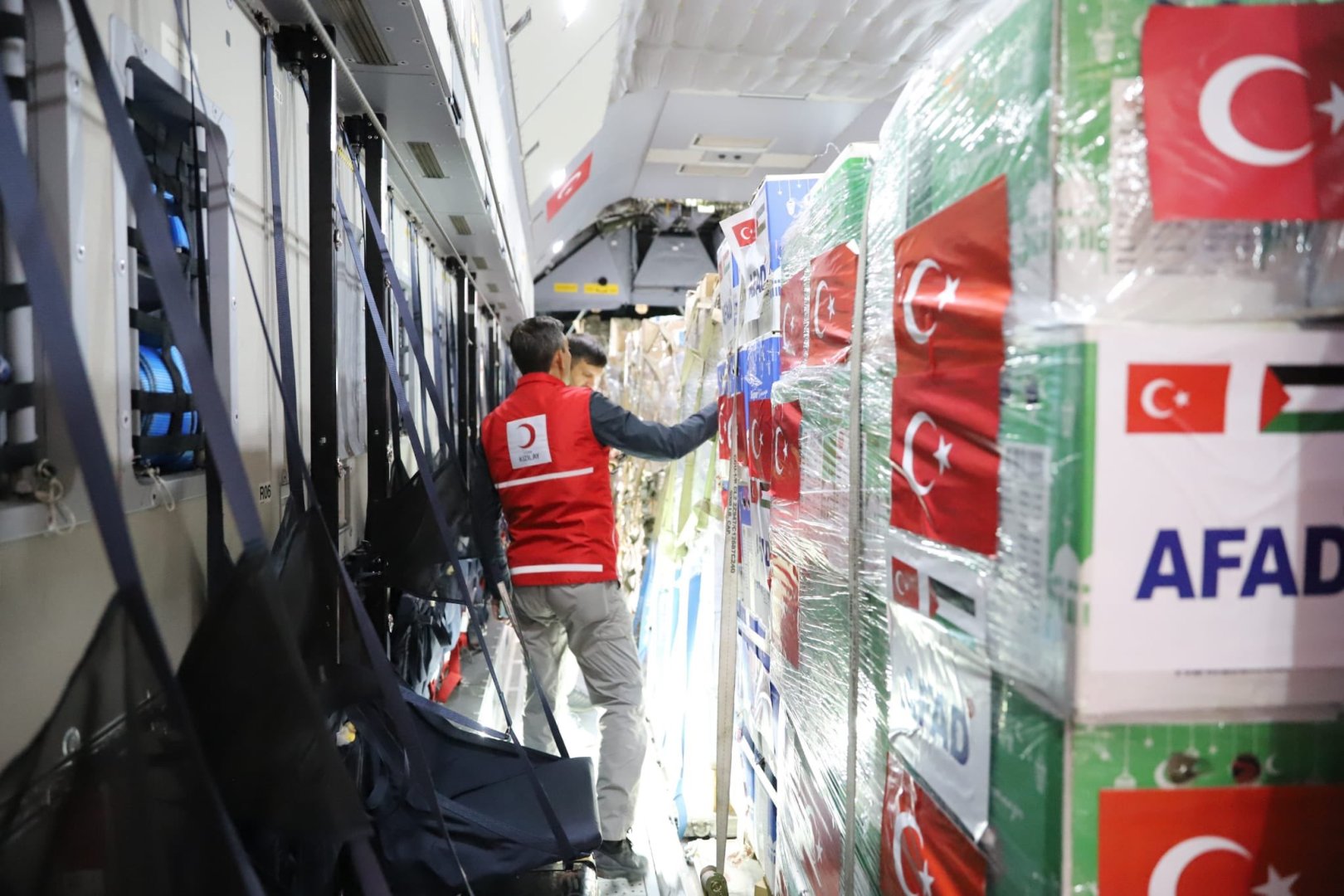 Kızılay tarafından yapılan açıklamada da, "Gazze için sizlerin desteğiyle temin edilen yardım malzemelerinin yüklemesi tamamlandı. Milli Savunma Bakanlığı ve AFAD iş birliğiyle yardımlarınızı ulaştırmak için hareket edecek askeri uçakta yerimizi aldık" ifadelerine yer verildi.