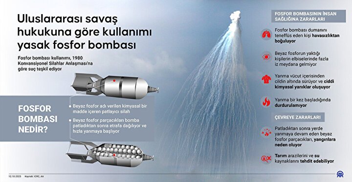 Uluslararası hukuka göre yoğun sivil nüfusun bulunduğu bölgelerde kullanımı yasak olan beyaz fosforun dumanı, teneffüs edildiğinde ciğerlerde ani yaraların oluşmasına ve nefessiz kalarak boğulmaya yol açabiliyor.