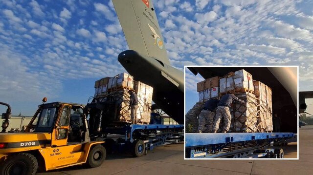 Milli Savunma Bakanlığı, çoğunlukla sağlık malzemelerinin yer aldığı yardım paketlerinin Gazze'ye ulaştırılmak üzere uçaklara yüklenmeye başlandığını duyurdu.