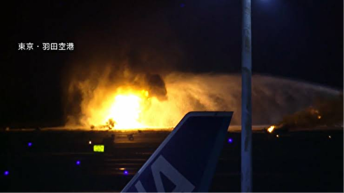 Japonya'nın başkenti Tokyo'daki Haneda Havalimanında Japon Havayolları'na ait bir uçak pistteki başka bir uçakla çarpıştı. 400'den fazla yolcunun bulunduğu uçakta büyük bir patlama meydana gelirken çıkan yangın kontrol altına alındı.