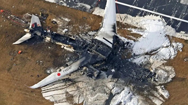 Japonya Havayolları'na ait 516 sefer sayılı yolcu uçağı, Haneda Havalimanı'na inişi sırasında Sahil Güvenlik Kuvvetleri'ne ait bir uçakla çarpışarak alev aldı. Kazanın ardından kullanılamaz hale gelen uçağın yol açtığı trajedinin izleri, gün ışığında ortaya çıktı.