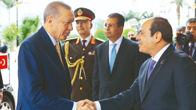Cumhurbaşkanı Erdoğan, 12 yıl aranın ardından ilk kez Mısır’a gitti. Onur konuğu olarak katıldığı Birleşik Arap Emirlikleri’ndeki (BAE) Dünya Hükümetler Zirvesi’nin ardından dün Mısır’a geçen Erdoğan, Cumhurbaşkanı Abdulfettah es-Sisi ve Türkiye'nin Kahire Büyükelçisi Salih Mutlu Şen tarafından karşılandı. Cumhurbaşkanı Erdoğan ve eşi Emine Erdoğan’ı havalimanında karşılayan Mısır lideri Sisi, ziyaret sonrası havalimanında uğurladı.