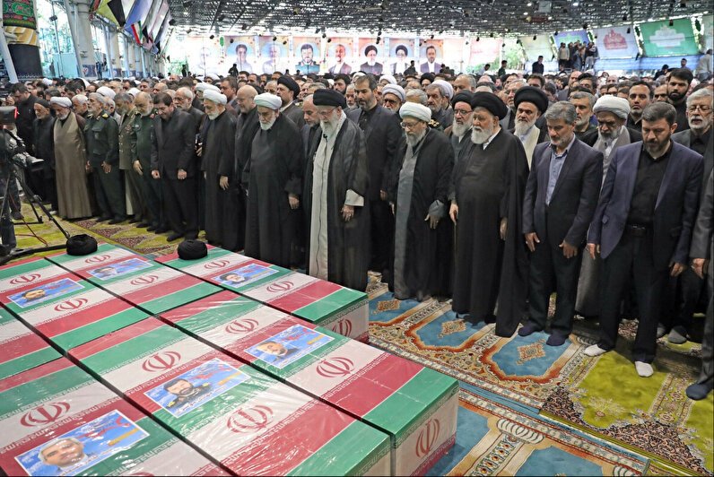 Helikopter kazasında hayatını kaybeden İran Cumhurbaşkanı İbrahim Reisi, Dışişleri Bakanı Hüseyin Emir Abdullahiyan ve diğer yetkililer için başkent Tahran'da cenaze namazı kılındı.