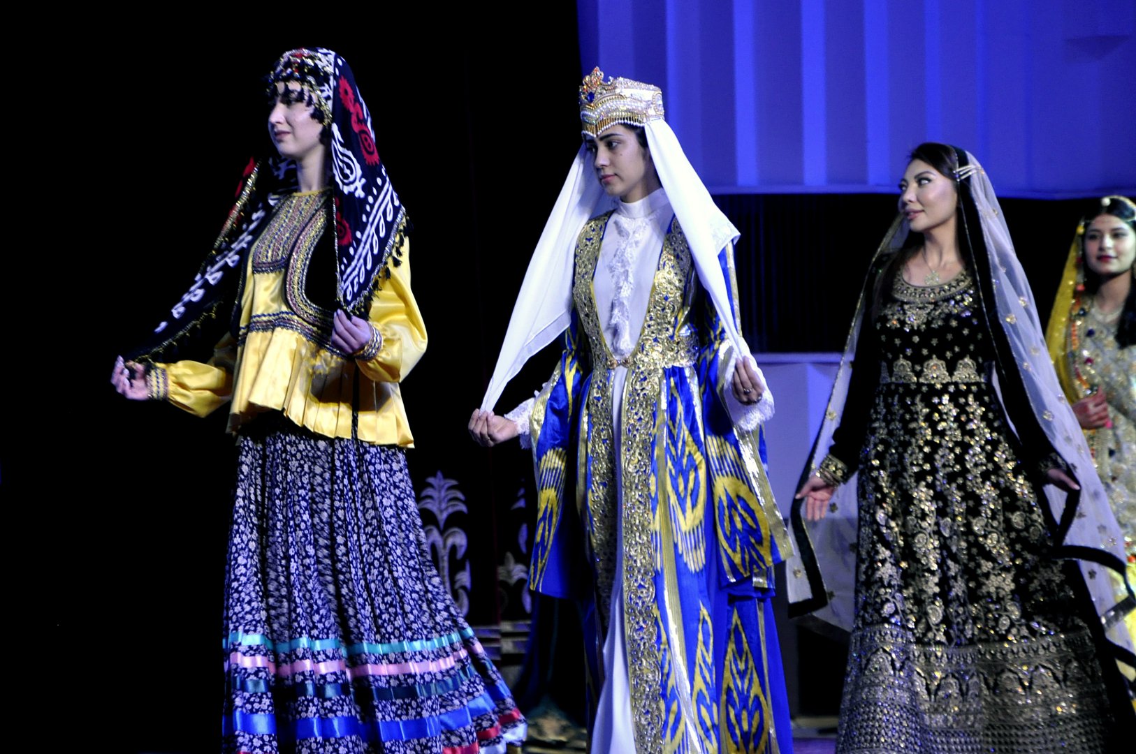 Kırgızistan'da yaşayan etnik halklar, geleneksel başörtü defilesi düzenledi. Konuklara Kırgız kadınlarının geleneksel başörtüsü "eleçek"in bağlanması gösterildi.