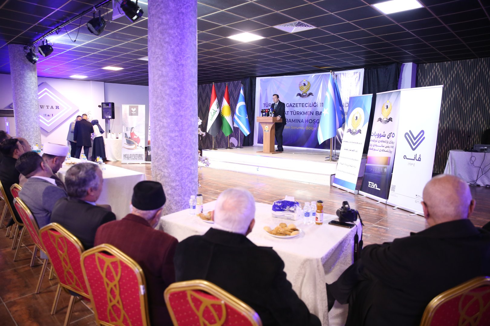 Irak Kürt Bölgesel Yönetimi (IKBY) Etnik ve Dini Oluşumlardan Sorumlu Bakanı Aydın Maruf'un ofisi ve Türkmen Basın Ajansı tarafından düzenlenen etkinliğe Bakan Maruf, Türkiye'nin Erbil Başkonsolosu Erman Topçu, kentteki basın mensupları ile siyasilerin bulunduğu davetliler katıldı.