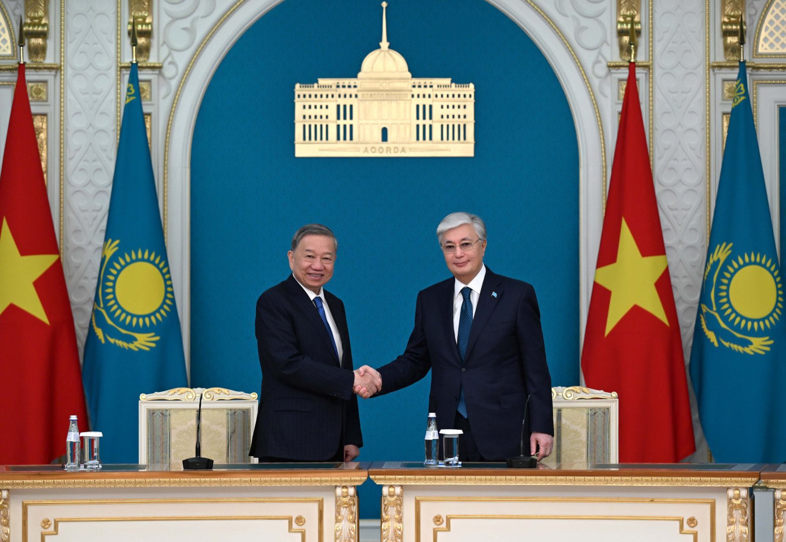 Kazakistan Cumhurbaşkanı Kasım Cömert Tokayev ile Vietnam Komünist Partisi Genel Sekreteri To Lam, ikili ilişkilerin seviyesini stratejik ortaklığa yükseltmeye yönelik Ortak Bildiri imzaladı.