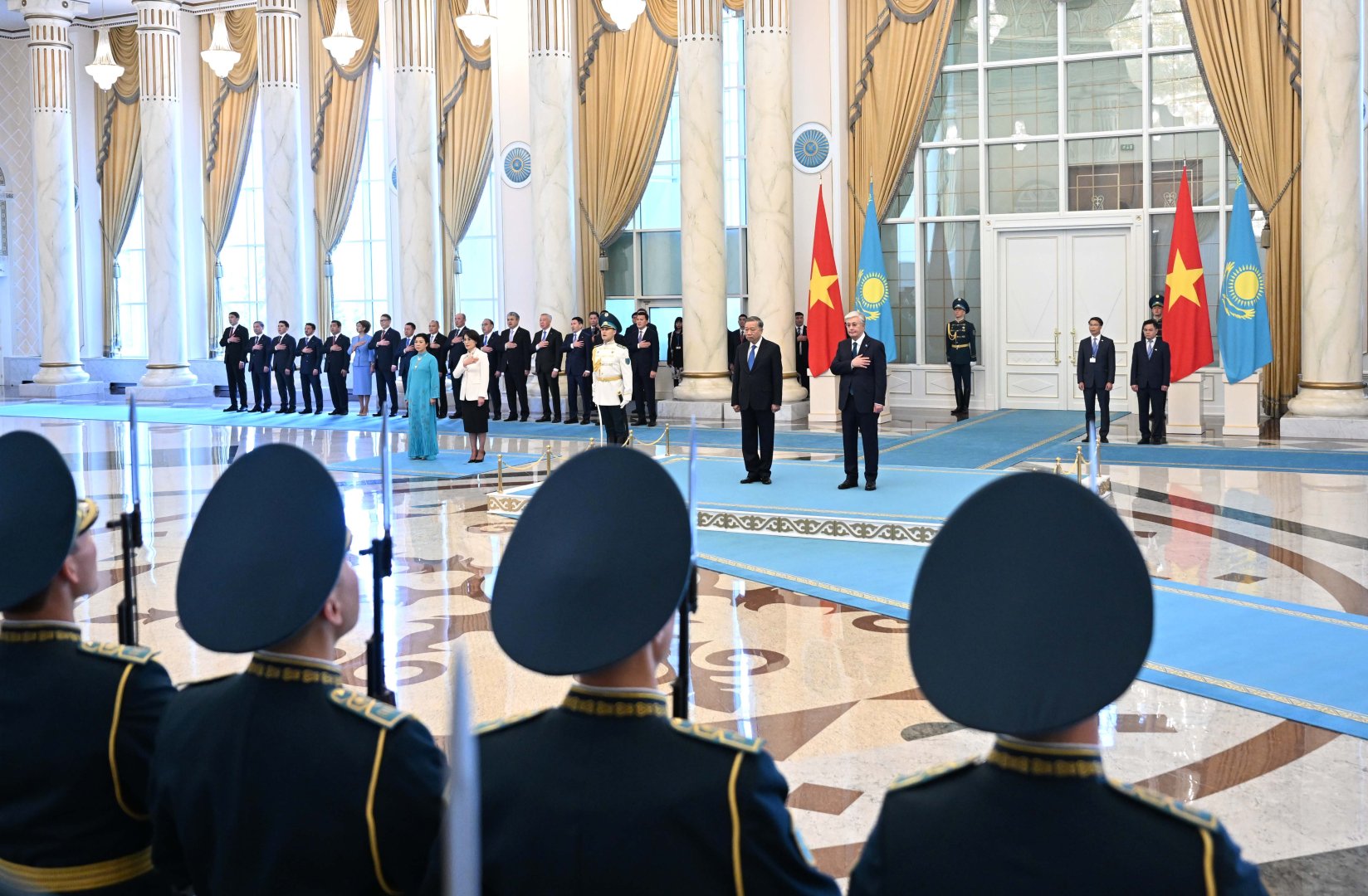 Kazakistan Cumhurbaşkanlığından yapılan açıklamaya göre, Cumhurbaşkanı Tokayev'in davetine icabetle başkent Astana'ya gelen Vietnam Komünist Partisi Genel Sekreteri Lam, Cumhurbaşkanlığı Sarayı Akorda'da resmi törenle karşılandı.