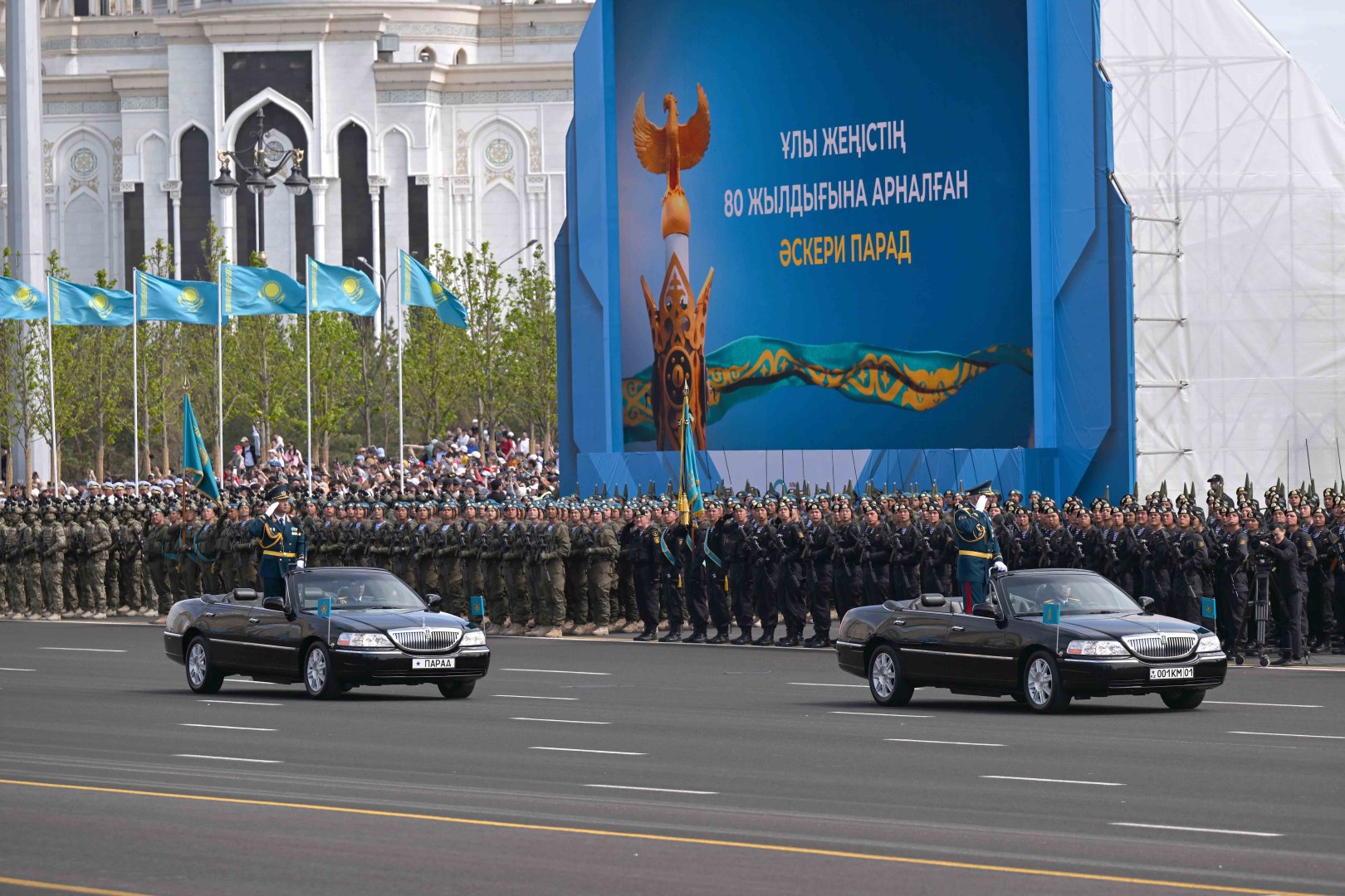 Başkent Astana'daki ülkenin ana meydanı olan Kazak Eli Meydanı'nda düzenlenen törene, Kazakistan Cumhurbaşkanı Kasım Cömert Tokayev ile devletin üst düzey yetkilileri, ülkede faaliyet gösteren uluslararası kuruluşların temsilcileri ile diplomatik misyon şefleri, İkinci Dünya Savaşı gazileri ve aileleri katıldı.