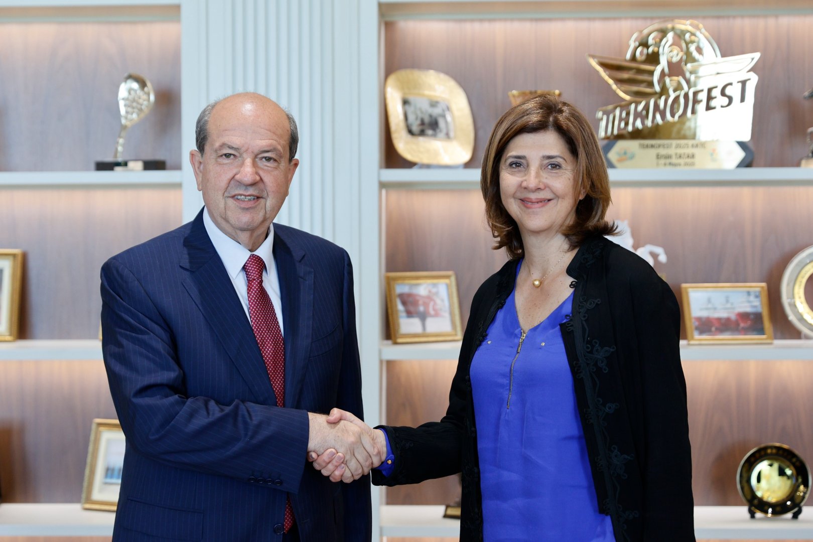 KKTC Cumhurbaşkanı Tatar, Birleşmiş Milletler (BM) Genel Sekreteri Antonio Guterres'in Kıbrıs Şahsi Temsilcisi Maria Angela Holguin Cuellar'i kabul etti.