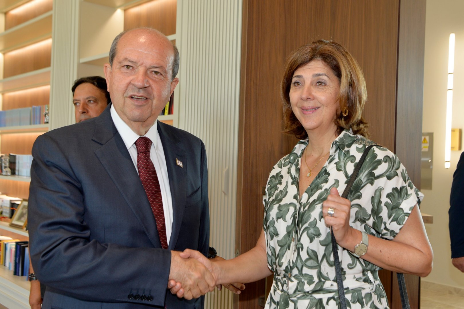 KKTC Cumhurbaşkanı Ersin Tatar, Birleşmiş Milletler (BM) Genel Sekreteri Antonio Guterres'in Kıbrıs Şahsi Temsilcisi Maria Angela Holguin Cuellar'ı kabul etti.