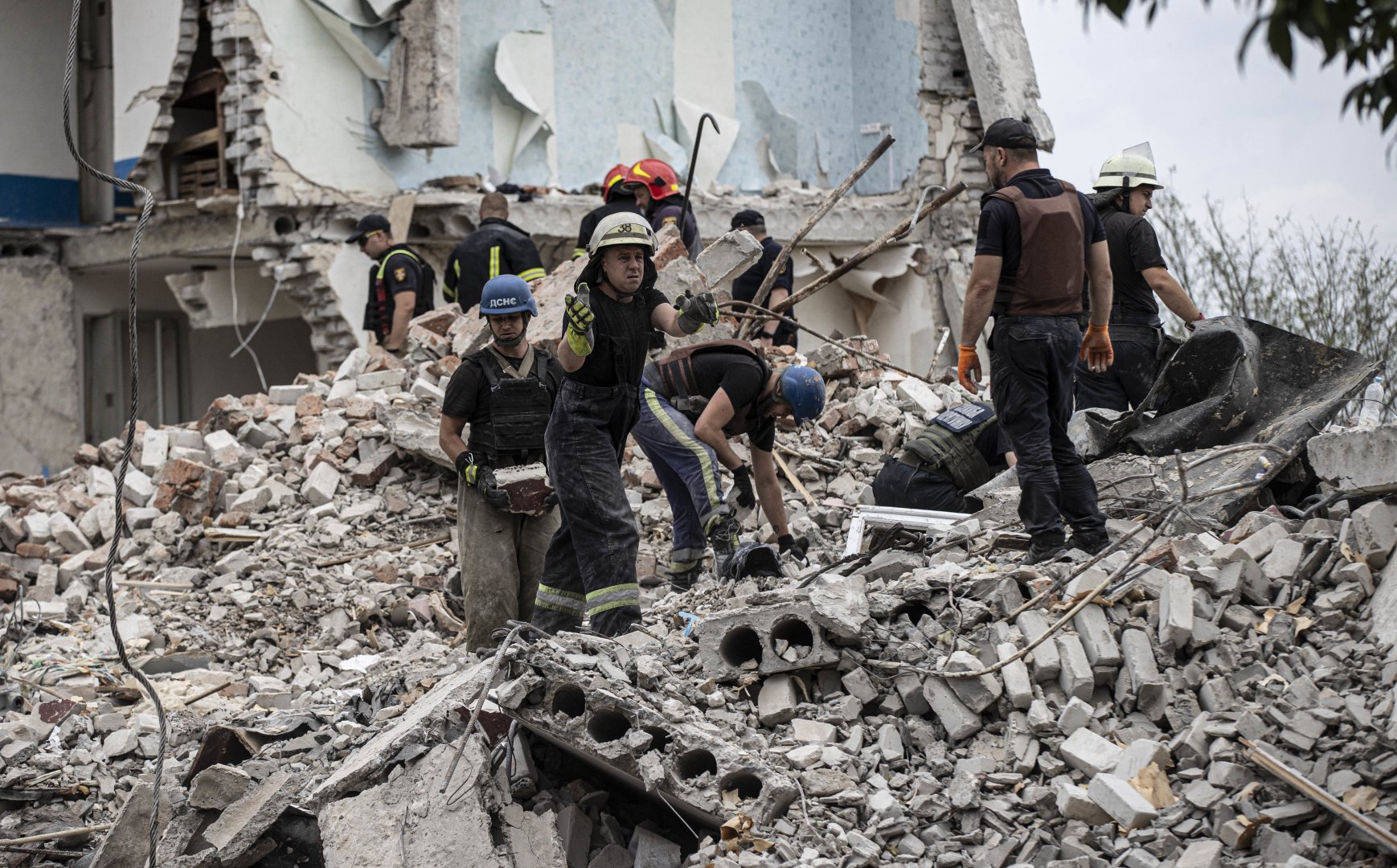 Ukrayna Acil Durumlar Servisi’nden yapılan açıklamada, dün akşam Rusya’nın roket saldırısı sonucu Ukrayna’nın Bakhmut bölgesinde Chasiv Yar kasabasında beş katlı 2 binanın yerle bir edildiği belirtildi.
