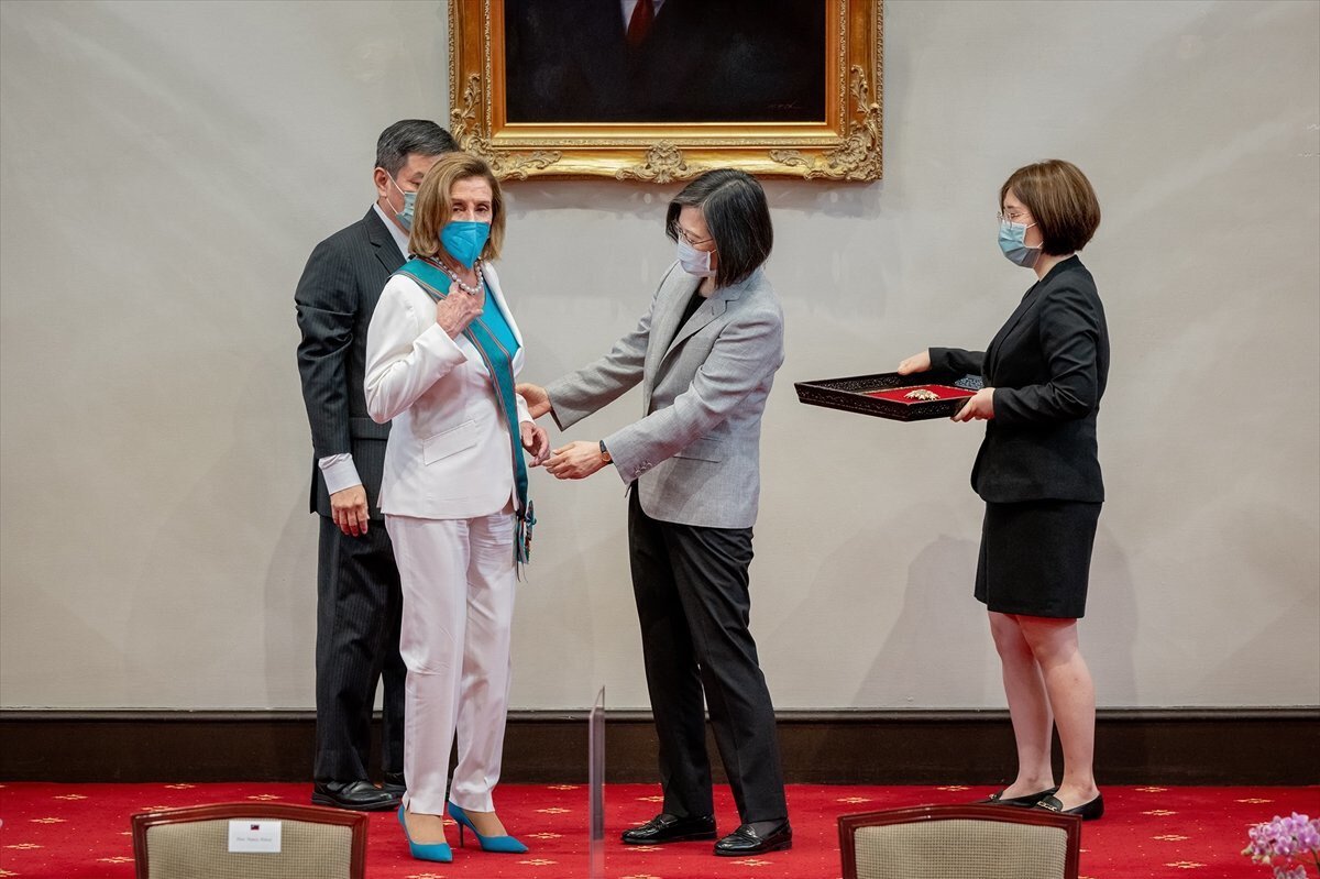Tayvan lideri Tsai, görüşmede Pelosi'ye, Tayvan'daki hükümetin devamı olduğunu öne sürdüğü Çin Cumhuriyeti'nin "Uğurlu Bulutlar Düzeni" adı verilen şeref madalyası ve özel şeridini takdim etti.