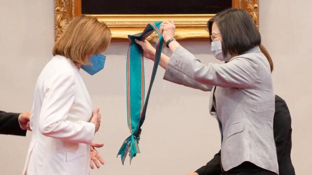 Pelosi de Kongre adına kendisine tevdi edilen onur için Tsai'ye teşekkür ederken, "ABD'nin Tayvan ile dayanışması hayatidir. Tayvan'da ve dünyanın geri kalanında demokrasiyi koruma kararlılığımız değişmemiştir. Ziyaretimiz, ABD'nin Tayvan'a destek sözünü terk etmediğini açıkça göstermiştir." dedi.