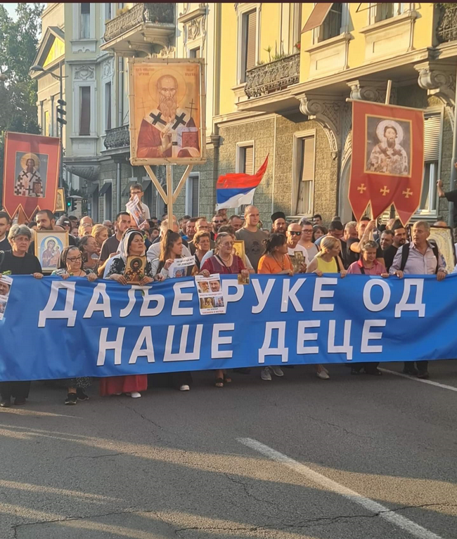 Sırbistan'ın başkenti Belgrad’da 50 bin kişi, LGBT üyelerinin 12-18 Eylül tarihlerinde Belgrad'da düzenlenmesi planlanan LGBT etkinliği Europride’a karşı tepki yürüyüşü düzenledi. Sırp Ortodoks Kilisesi Patrikhanesi ofislerinin önünden yürümeye başlayan göstericiler, şehir merkezinin sokaklarını geçtikten sonra Saint Marko Kilisesi'nin önüne geldi.